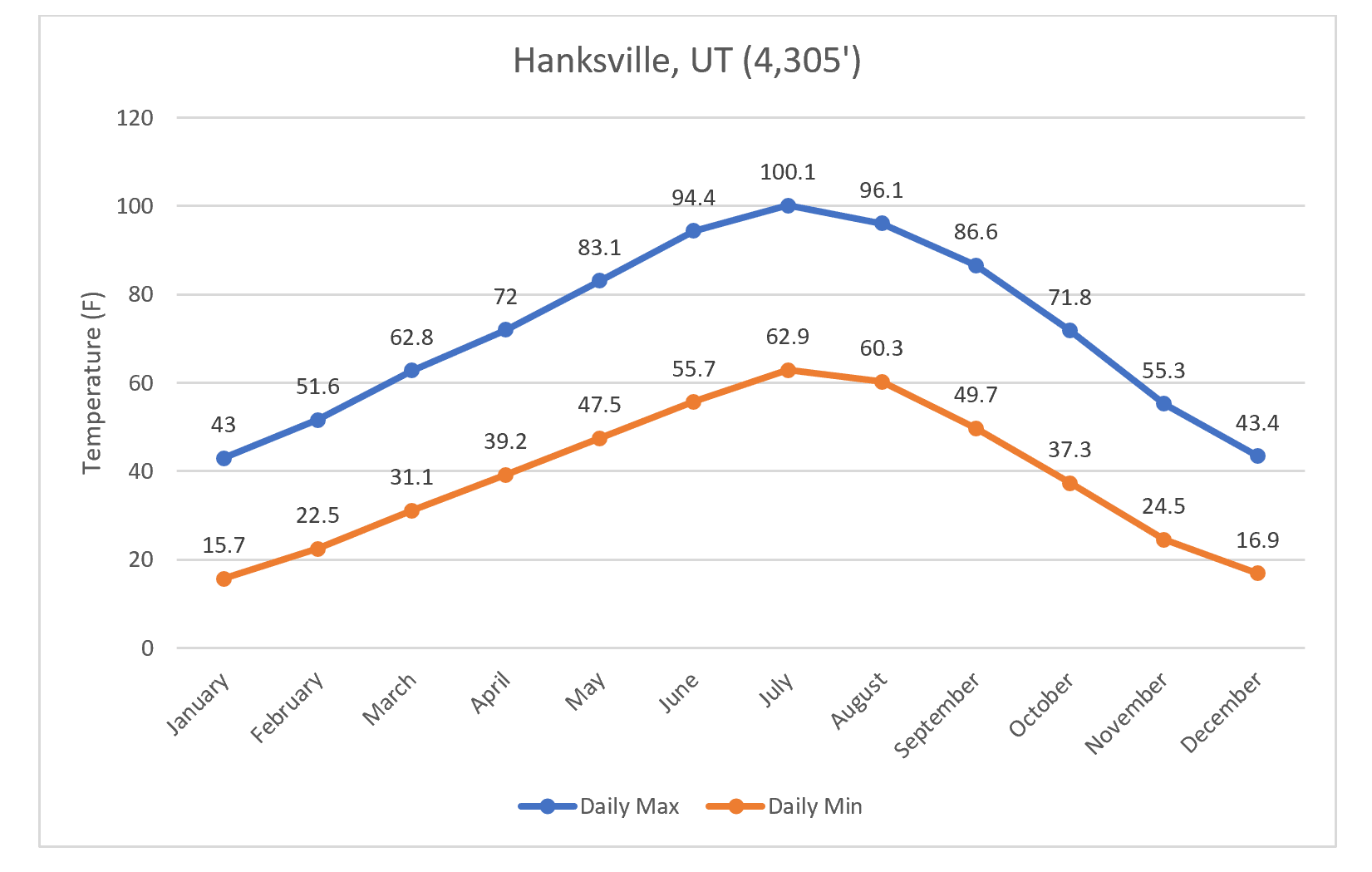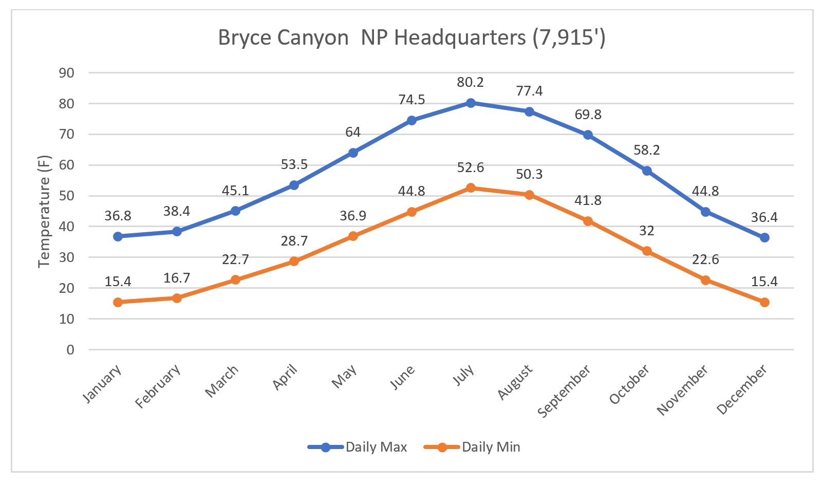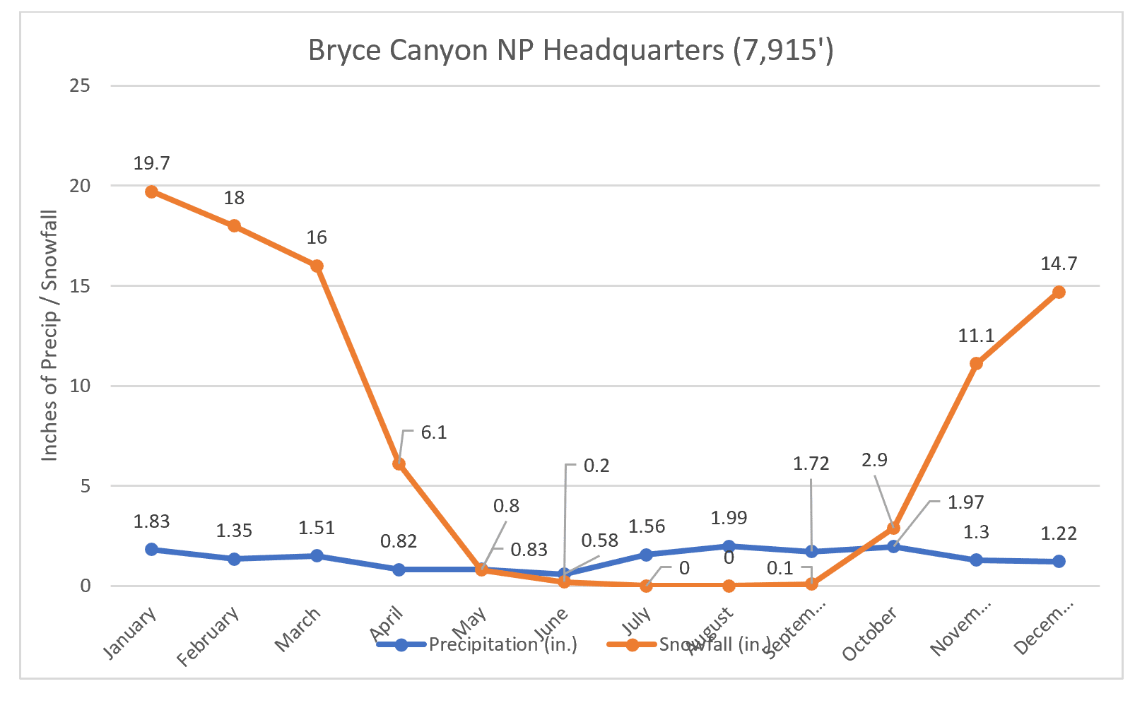 - Bryce Canyon, UT, as an example of the coldest parts of the Hayduke;