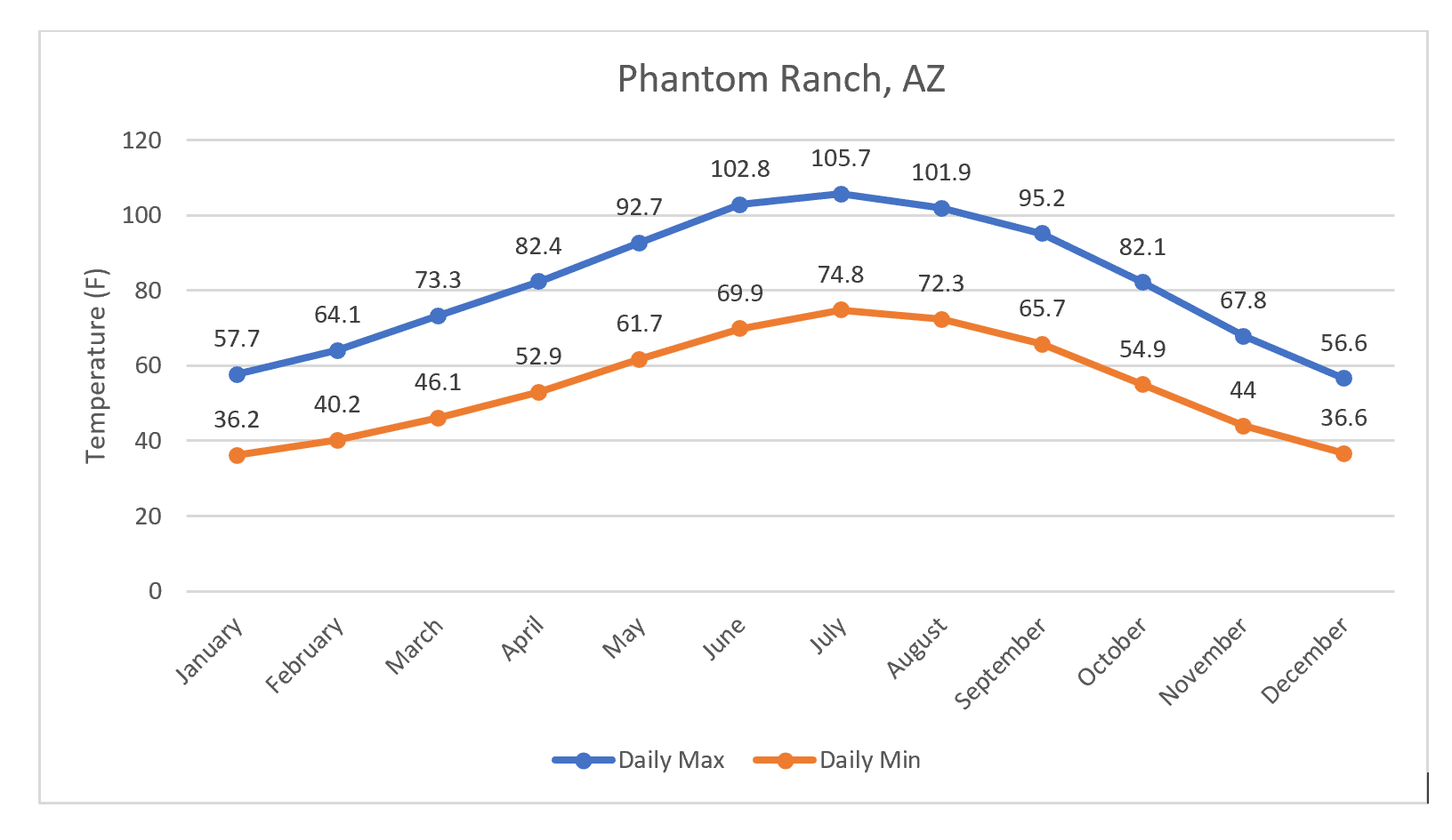 - Phantom Ranch, AZ, as an example of the hottest parts of the Hayduke;