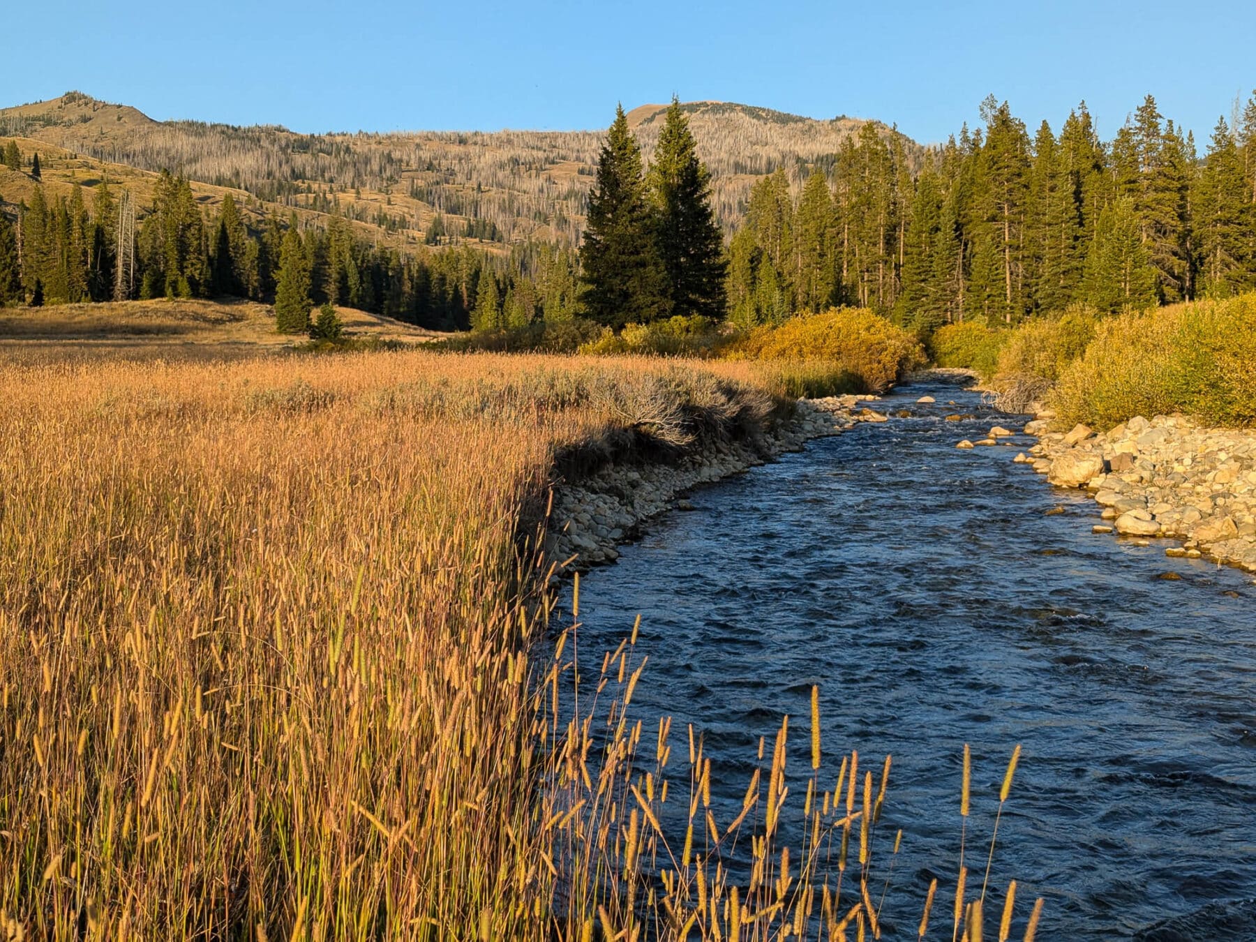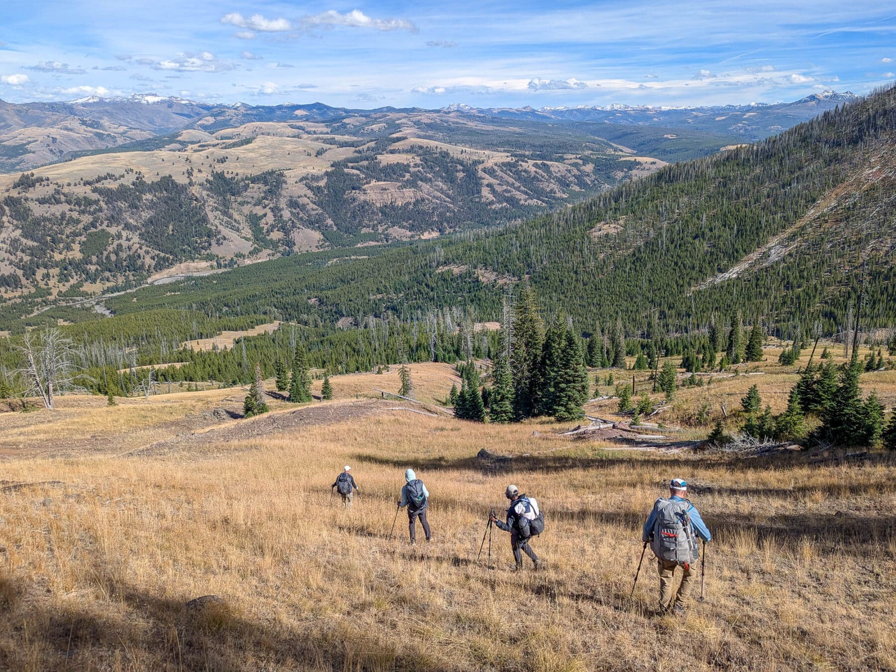 The itinerary starts in Slough and Pebble Creek, home to the Junction Butte wolf pack. Binoculars, cameras with big lenses, spotting scopes, and camp chairs are recommended, and we’ve kept the route below-potential to create time for wildlife viewing. Then the route loops through the upper Lamar River, where there is more interesting geology and probably a lot of bison and bugling elk.
